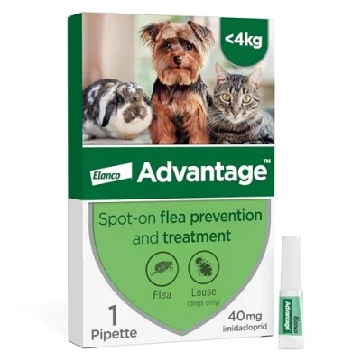 Advantage Spot On Flea Treatment For Cats, Dogs and Rabbits Under 4kg (1 pipette, 40mg), Kills Fleas Within 24 Hours, Prevents Further Infestation Up To Four Weeks in Cats