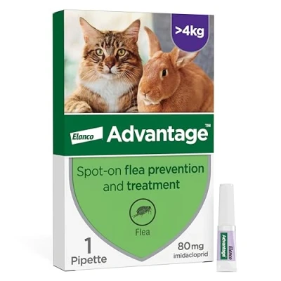 Advantage Spot On Flea Treatment For Large Cats and Rabbits Over 4kg (1 pipette, 80mg), Kills Fleas Within 24 Hours, Prevents Further Infestation Up To Four Weeks in