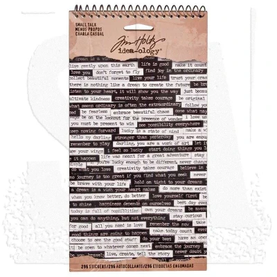 Create your own conversations with the Small Talk Spiral Bound Sticker Book from the Tim Holtz Idea-Ology range. This inspiring collection features 478 word and phrase stickers on six black and white sheets, designed to add a personalised touch to your papercraft projects. With a variety of motivational and inspiring words like "believe," "friendship," and "blessings," these stickers are perfect for scrapbooking, card making, home décor, and more. The classic label maker design offers a vintage feel, making it a versatile addition to your creative toolkit.. Features & Benefits:. 478 motivational stickers – perfect for adding meaningful words and phrases to your projects. Classic label maker design – vintage-style stickers for a creative touch. Versatile use – ideal for scrapbooking, card making, home décor, and other papercraft projects. Sticker book dimensions: 11.4 x 21.6 cm (4.5 x 8.5 inches) – compact and easy to store. Perfect for:. Scrapbooking your memories and stories. Handcrafted card making and journaling. Personalising your home décor with inspirational phrases