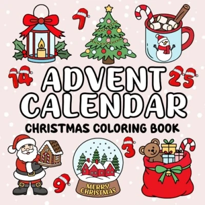 Advent Calendar Christmas Coloring Book: 50 Bold and Easy Holiday Designs Cute Cozy Illustrations for a Countdown to Adults, Teens, Kids