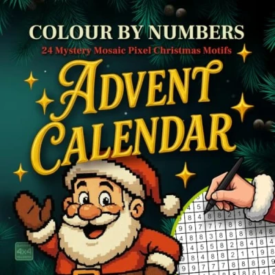 Advent Calendar Color by Number: 24 Mystery Mosaic Pixel Christmas Motifs Adult paint number Book Activity Coloring for Relaxation and Stress Relief