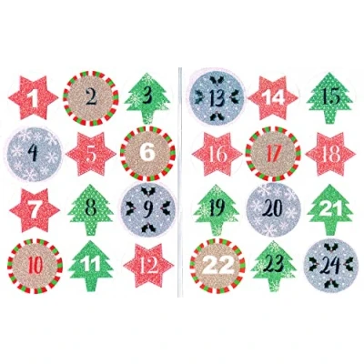 Are you looking for a way to add a personal touch to your Christmas countdown? These sparkling Advent Stickers 1-24 allow you to create a magical and unique surprise for each day leading up to Christmas, making it the perfect gift for someone who values thoughtful and heartfelt gestures. You are viewing: A Pack of Advent Stickers Occasion: Perfect for Christmas Numbers: 1 to 24 on a festive shaped glitter sticker Details: A sheet of stick on adhesive advent stickers to create your own magical countdown to Christmas, use each numbered sticker to personalise your advent surprise Good to know: Each sticker measures 4.5 cm across Sheet Size: 18cm x 14cm 5.5" x 7" Postal Size: Letter Warning: Not suitable for children under 3