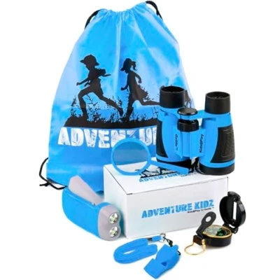 Adventure Kidz Outdoor Exploration Kit, Children’s Binoculars, Flashlight, Compass, Fox Whistle, Magnifying Glass, Backpack. Great Gift Set for STEM, Pretend Play, Ages 3+