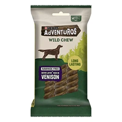 Dog that really appeals to their natural instincts of biting, playing and chewing Purina Adventuros has created Wild Chew Long-lasting chew wrapped Dog will love to bite into the tasty outer and chewy inner