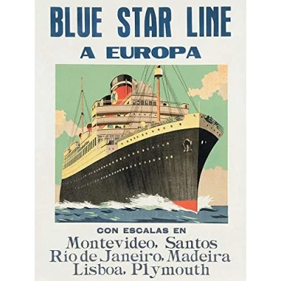 Advertisement Travel Cruise Blue Star Line Europa Ship Art Print Poster Wall Decor 12X16 Inch