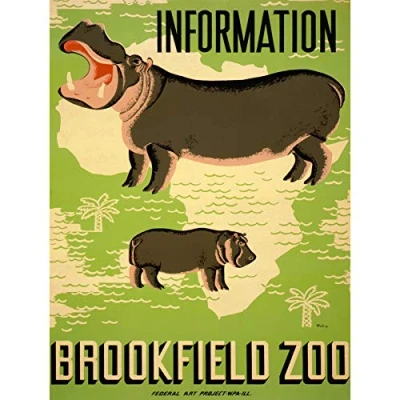 ADVERTISING EXHIBITION BROOKFIELD ZOO HIPPO AFRICA FINE ART PRINT POSTER 30X40 CM 12X16 IN ABB5902B