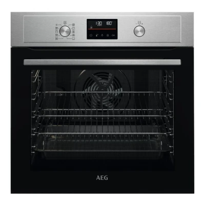 COOKED EVENLY EVERYWHERE - Cook more at the same time and still get a perfect result. The additional heating ring in our oven ensures your dishes are evenly cooked, even when loaded with up to three trays – for corner to corner deliciousness. Sure to make each portion as perfect as the last. EFFORTLESS ONE TOUCH PYROLYTIC CLEANING - Make cleaning effortless with pyrolytic cleaning - With one touch of the Pyrolytic cleaning function, dirt, grease and food residue in the oven is converted into ash that you can easily wipe off with a damp cloth. EFFORTLESS CONTROL WITH EXPLORE LED - EXPlore LED Display with Touch buttons. Explore a new way to experience your oven with the responsive EXPlore LED Display with touch buttons. The vibrant interface gives you quick access and dynamic control of cooking time, temperature, and other features. FAST AND EFFICIENT COOKING WITH SURROUNDCOOK - With this oven, using energy efficiently also means cooking efficiently. It has a new convection system called SurroundCook, which ensures hot air circulates evenly throughout the oven cavity. The result is that the oven heats up faster and cooking temperatures can be reduced by up to 20%, saving you both time and energy Meal for one or a full-on family feast? This AEG oven's Hot Air function cooks every meal evenly, no matter where you place it. It circulates hot air around the whole oven which means no cold spots or soggy bottoms. There's also an addition heating ring for consistent, corner-to-corner cooking, even when every shelf is loaded up. Perfect for the Sunday roast and all the trimmings. And even the clean up's a piece of cake. The Pyrolytic cleaning function turns burnt on food, dirt and grease into ash so you can just wipe it away. No elbow grease required.
