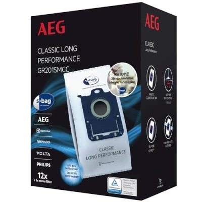 Suitable for appliances of Satrap, Excelsior, Seppelfricke, Eio, Clatronic, Hugin, Lloyds, Volta, Dirt Devil and Erres. Suitable for the model numbers (a.o.): Philips FC9197/91 (PERFORMERPRO) vacuum cleaner, Philips FC8721/09 (PERFORMEREXPERT) vacuum cleaner, Philips FC9170/03 (PERFORMER) vacuum cleaner, Philips FC8783/09 (PERFORMERSILENT) vacuum cleaner, Philips FC9150/01 vacuum cleaner, Philips FC9171/01 (PERFORMER) vacuum cleaner, Philips FC8780/09 vacuum cleaner, Philips FC8575/09 (PERFORMERACTIVE) vacuum cleaner, Philips FC8241/09 vacuum cleaner and Electrolux ZUSORIGDB (90027367600 ULTRASILENCER) vacuum cleaner.Manufacturer description: GR201SM s-bags classic 12 pcs, GR201SM +1 microfilter.Replacement/alternative product of:Electrolux AEG 9001684811 vacuum cleaner bag - E201SM E201SM s-bag clas long PERFX12Electrolux AEG 9001684613 vacuum cleaner bag - E210S E210S ultra long performance dust bags x 3Electrolux AEG 9001688002 vacuum cleaner bag - E200SM E200SM paper dust bags x 15Electrolux AEG 9001684621 vacuum cleaner bag - E200S classic dust bags x 5Electrolux AEG 9001684746 vacuum cleaner bag - GR201S vacuum cleaner bags classic long performance 4 pcsElectrolux AEG 9001684589 vacuum cleaner bag - E201S E201S 4x s-bag classic long performanceElectrolux AEG 9000844804 vacuum cleaner bag - E200 s-bag classicElectrolux AEG 9001967695 vacuum cleaner bag - E200M E200M 15 s-bag paperElectrolux AEG 140108803010 vacuum cleaner bag - dust bag zeus syntclasslongElectrolux AEG 1131208017 vacuum cleaner bag - dust bagElectrolux AEG 1181384015 vacuum cleaner bagElectrolux AEG 9000844812 vacuum cleaner bag - E200B E200B dust bagElectrolux AEG 9002564723 vacuum cleaner bag - GR201 GR201 cl.long performance 4 pcsElectrolux AEG 9002560994 vacuum cleaner bag - E201M E201M s-BAGX12 classic long peElectrolux AEG 9001669762 vacuum cleaner bag - 201M GR201M s-bag clas X12+1MF