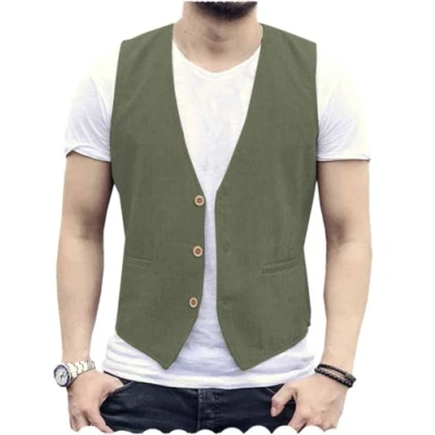 AeoTeokey Men's Linen Vest Cotton Summer Suit Waistcoat Casual for Wedding(Army Green,L)