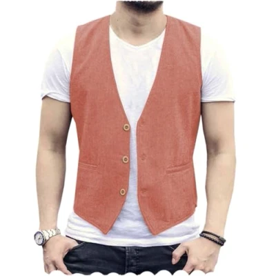AeoTeokey Men's Linen Vest Cotton Summer Suit Waistcoat Casual for Wedding(Coral,M)