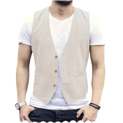 AeoTeokey Men's Linen Vest Cotton Summer Suit Waistcoat Casual for Wedding(Ivory,XL)
