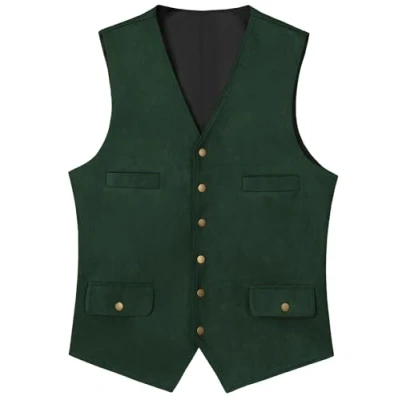 AeoTeokey Men's Suit Vest Suede Casual Western Vintage Cowboy Waistcoat Regular Fit(Hunt Green,4XL)