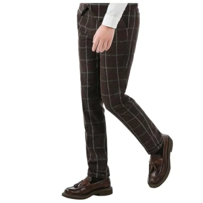 AeoTeokey Men's Tweed Suit Pants Plaid Thick Vintage Wool Trousers for Wedding Groomsmen (Coffee, 29W x 30L)