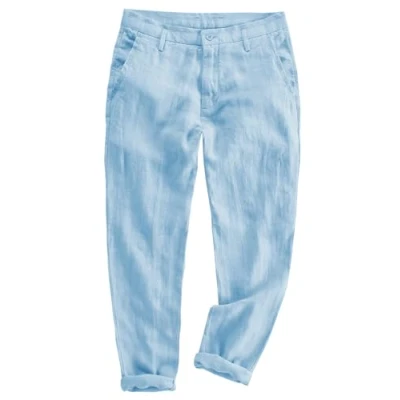 AeoTeokey Mens Linen Pants Casual Summer Beach Trousers Lightweight Cotton Long (Light Blue, 40W x 32L)