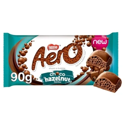Aero Hazelnut Block 90g is a creamy milk chocolate bar with Aero’s signature bubbly texture, studded with roasted hazelnuts for a satisfying crunch and rich, nutty flavor. Perfect for sharing or a personal treat, it offers a uniquely light, melt-in-the-mouth chocolate experience.
