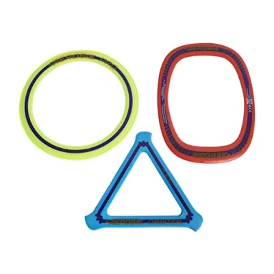 PACK OF 3 FLYING RINGS: Includes 1 yellow-colored Aerbie Pro Ring, 1 blue-colored Aerobie Orbiter Boomerang, and 1 red-colored Aerobie Pro Blade PRO RING: Features an aerodynamic shape that delivers the farthest distanced throws and more accuracy than standard flying discs that are much heavier and have a tendency to roll after being released ORBITER BOOMERANG: Travels up to 90 ft. far after being thrown before making a 360 degree turn back to the thrower PRO BLADE: Easiest ring to throw and catch with innovative technology that allows it to self level as it rotates in the air VERSATILE OUTDOOR TOY FUN: Perfect collection for exhilarating games such as ultimate frisbee, disc golf, or any outdoor freestyle play, Manufacturer: Spin Master