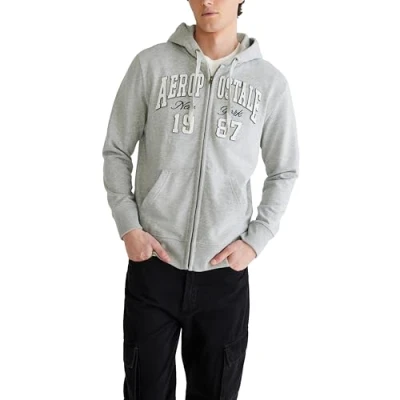 AEROPOSTALE Men's Aero Logo Full Zip Hoodie Left Chest Hooded Sweatshirt, Light...