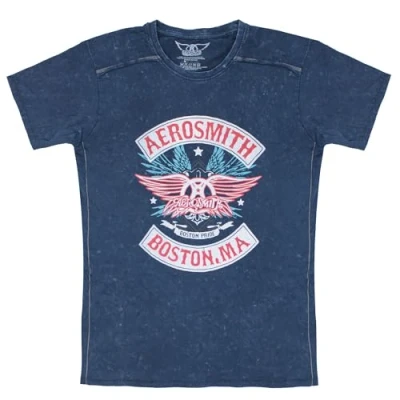 Aerosmith T Shirt Boston Pride Band Logo Official Mens Navy Blue Snow Wash M