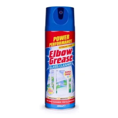 FabFindsExperience the power of Elbow Grease® Glass Cleaner! Our special formula guarantees a streak-free and super shiny finish on windows and mirrors. With its foaming action, it easily removes dirt and fingerprints, making it the only cleaner you'll ever need! Keep your glass surfaces looking flawless with Elbow Grease.. 1 x Elbow Grease Streak Free Glass Cleaner 400ml. Super Shine. Foaming Action. Windows, mirrors and glass. Streak free