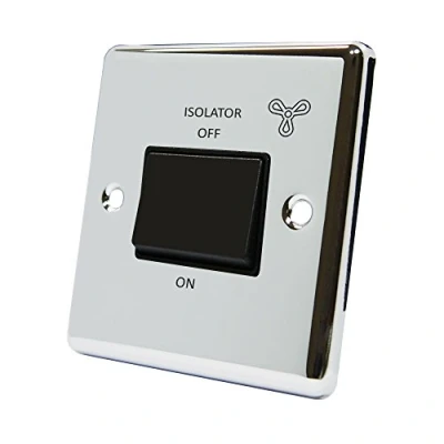 AET CPCFANBL Polished Chrome Classical Black Insert Plastic Rocker Switch 10 Amp 3 Pole Fan Isolator Switch, 240 V