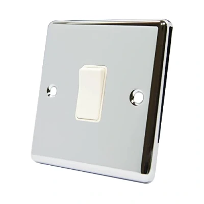 AET CPCINTWH Polished Chrome Classical Intermediate White Insert Plastic Rocker Switch 10 Amp Single 1 Gang Light Switch, 240 V