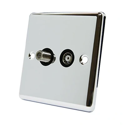 TV Coaxial Female & Satellite Sky F Type Socket Polished Chrome Silver Mirror Effect Metal Plate Classical Style Raised Profile Black Insert, Manufacturer: AET