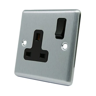 AET CSC1GSOCBL Satin Chrome Classical 1 Gang Black Insert Plastic Rocker Switch 13 Amp Single Plug Socket, 240 V
