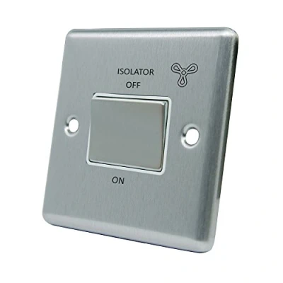 10 Amp 3-Pole Fan Isolator Switch Brushed Satin Matt Chrome Stainless Steel Effect Metal Plate Classical Style - Raised Profile White Insert with Metal Rocker Switch, Manufacturer: AET