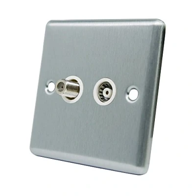 AET CSCTVSKYWH Satin Chrome Classical TV & Sky White Insert Coaxial and Satellite Socket, 240 V