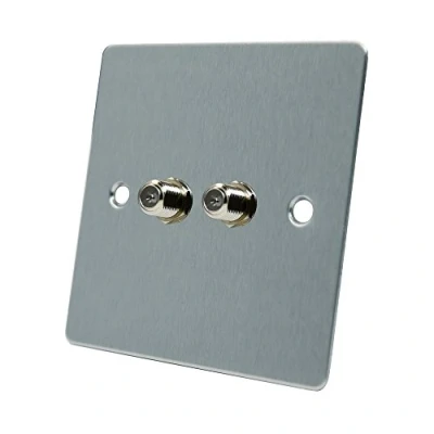 Satellite Sky F Type 2-Gang Socket Brushed Satin Matt Chrome Stainless Steel Effect Metal Plate Sleek & Stylish Flat Plate. Mounting back box: min. 35 mm deep Item package quantity: 1, Manufacturer: AET