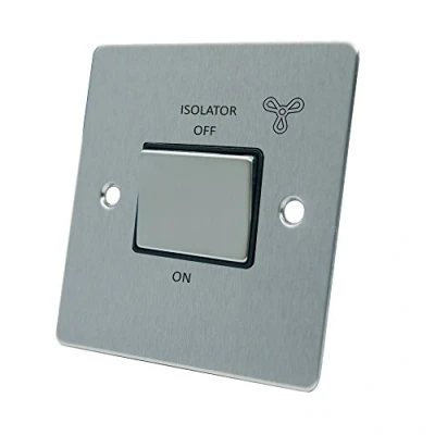 10 Amp 3-Pole Fan Isolator Switch Brushed Satin Matt Chrome Stainless Steel Effect Metal Plate Sleek & Stylish Flat Plate. Mounting back box: min. 35 mm deep Black Insert with Metal Rocker Switch, Manufacturer: AET