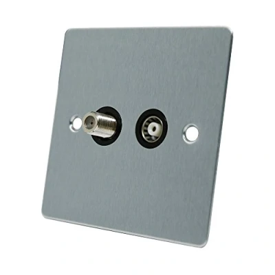 TV Coaxial Female & Satellite Sky F Type Socket Brushed Satin Matt Chrome Stainless Steel Effect Metal Plate Sleek & Stylish Flat Plate. Mounting back box: min. 35 mm deep Black Insert, Manufacturer: AET