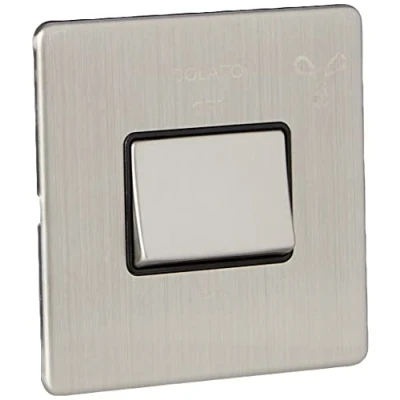 Screwless 10 Amp 3-Pole Fan Isolator Switch Brushed Satin Matt Chrome Stainless Steel Effect Metal Plate Sleek & Stylish Flat Plate. Mounting back box: min. 35 mm deep Black Insert with Metal Rocker Switch, Manufacturer: AET