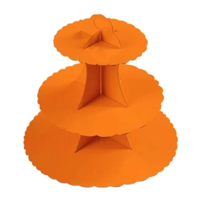 AEX 3 Tier Cake Stands For Afternoon Tea, Cupcake Stand Cardboard, Round Dessert Tower Party [Orange]