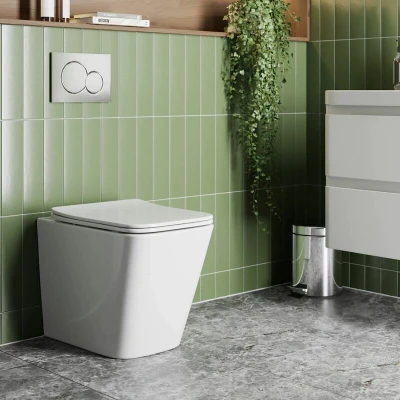 General description Add a contemporary touch to your bathroom with the Affine Modern Bathroom Back to Wall Toilet Pan. This stylish toilet features a sleek back to wall design that not only enhances the aesthetics of your space but also saves valuable floor space. The convenient soft close seat ensures a quiet and comfortable experience, making it an ideal addition to any modern home. Technical specifications Style: Modern Toilet Type: Back To Wall Pan Type: Standard Pan Width: 355 mm Pan Projection: 500 mm Pan Shape: Square Flush Type: Push Button Soft Close Seat: Yes Rimless Pan: Yes Pan Height: 355 mm Toilet Colour: White Rim Type: Box Compatibility and accessories Cistern to be purchased separately Usage The soft close seat features a clever mechanism that prevents the seat from dropping quickly, ensuring a stress-free environment in your bathroom. Other information 25 year guarantee Components Included: Pan & Toilet Seat
