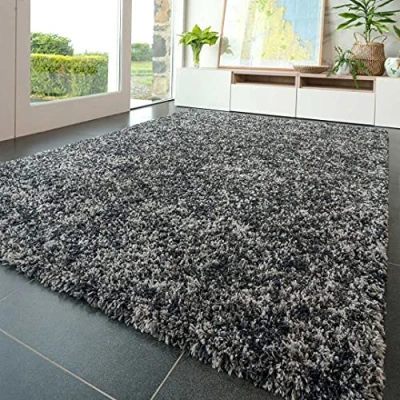 Affordable Large Durable Grey Slate Fuffly Shaggy Shag Carpet Rug Modern Super Soft Plush Thick Denim Blue Cream Lounge Living Dining Room Kitchen Bedroom Mat Area Rugs 200cm x 290cm
