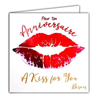 Afie 22056 Square Card For Your Birthday A Kiss You Lip Red Shiny Pink Lipstick
