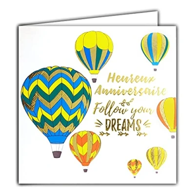 Afie 22065 Happy Birthday Card Follow Your Dreams Suis in Shiny Gold Square 145 x mm with Envelope Made France