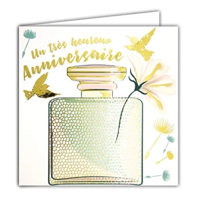 Afie 22068 Happy Birthday Card in Shiny Gold Square 145 x mm with Envelope Made France, Fragrance, Flowers, Grains, Birds, Freedom, Women, Girl;