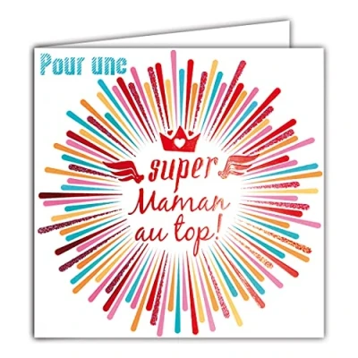 Afie 22076 Glossy Red Card for a Super Mum on Top All Occasions Birthday Mother's Day Birth Parents with White Envelope Format 12 x 17.5 cm