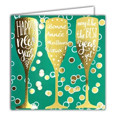 Afie 23041 Square Happy New Year Best Greetings Card 3 Flutes Bubbles May It Be The Yet With White Envelope