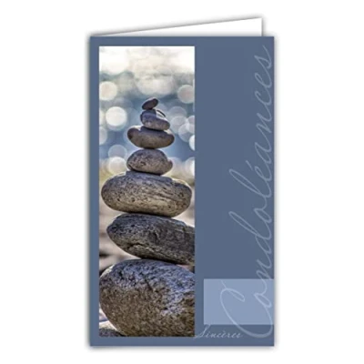 Afie 24 1025 Sincères Condolances Card with White Envelope 95 x 160 mm Cairn Montjoie Stacked Pebbles Zen Stones Sea Blue Soul Rest