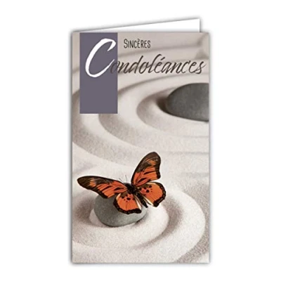 Afie 24 1027 Sincères Condolances Card with White Envelope 95 x 160 mm Butterfly Pebbles Stones Sand Garden Zen Soul Rest