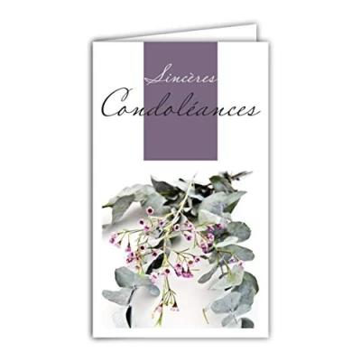 Afie 24 1033 Sincere Condolance Card with White Envelope Round Leaf Eucalyptus Gunnii Tree Branch Dried Flowers Purple Mauve