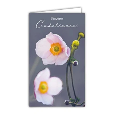 Afie 24 1034 Sincères Condolances Card Closed Format 95 x 160 mm with White Envelope Pink Flowers