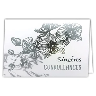 Afie 24 5003 Silver Card with Envelope 145 x 105 mm Sincere Condolence Courage Gerb of White Orchid Flowers for Death a Woman Deuil Ceremony Obseque Party Made in France