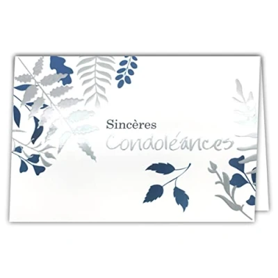Afie 24 5007 Silver Card with Envelope 145 x 105 mm Sincere Condolence Courage Leaves Tree Shiny Blue for Death Women or Men Goodbye Ceremony Made in France