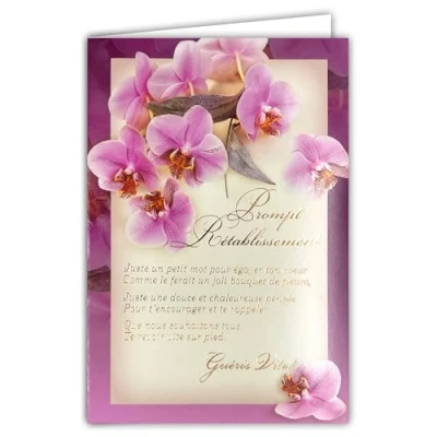 AFIE 35 757PRET Recovery Quick Card Pink Orchid Flowers for Women with White Envelope 12 x 17 cm Warm Thought to See You Quickly on Stand FSC Paper