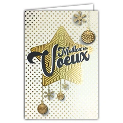 Afie 61 5616 Gold Shiny Glitter Stars Christmas Baubles Snowflakes Good Holidays With White Envelope