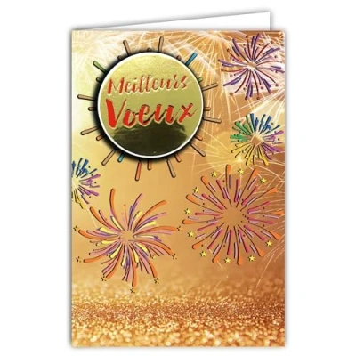 Afie 61 6024 Card with Envelope and Collage Embossed Fireworks in Shiny Gold Glitter Sparkling Wishing A Happy New Year Present Her Best Wishes